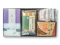 宮城県産の原料を使い、パッケージに産地のイラストを描いた「こころひとつ」シリーズ3種のほか、あえて味付けせずに焼き上げた「素焼みやこがね」などを詰合せました。
